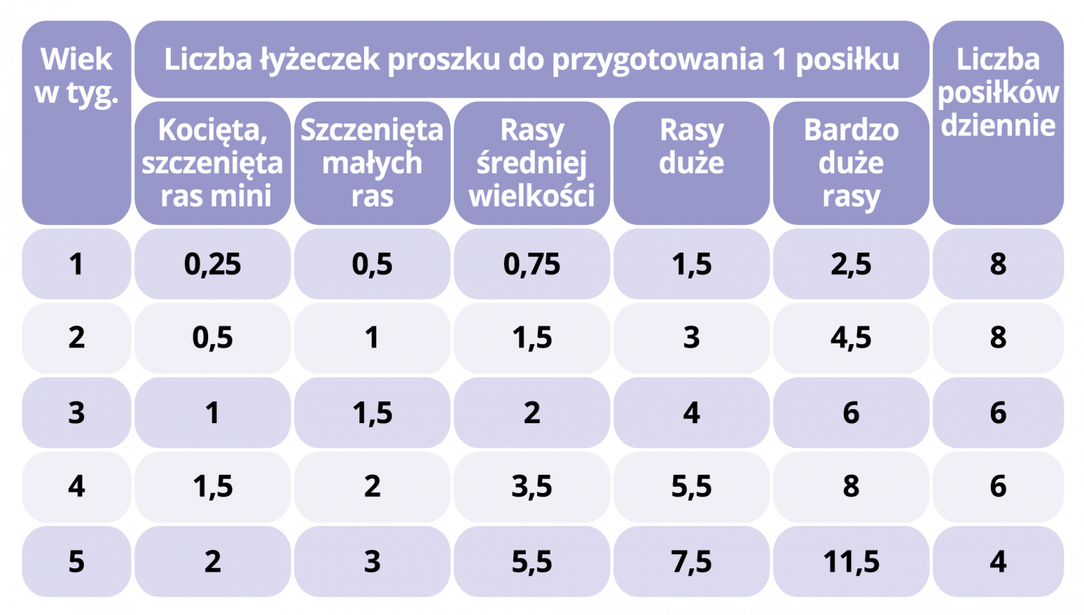 | Przeznaczenie | Dla szczeniąt i kociąt od momentu urodzenia |
