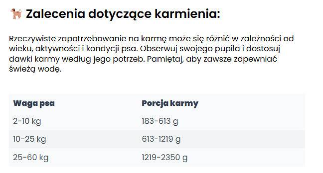 Bezzbożowa i monoproteinowa karma mokra przeznaczona dla dorosłych psów wszystkich ras.