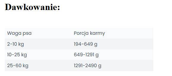 Bezzbożowa i monoproteinowa karma mokra przeznaczona dla dorosłych psów wszystkich ras.